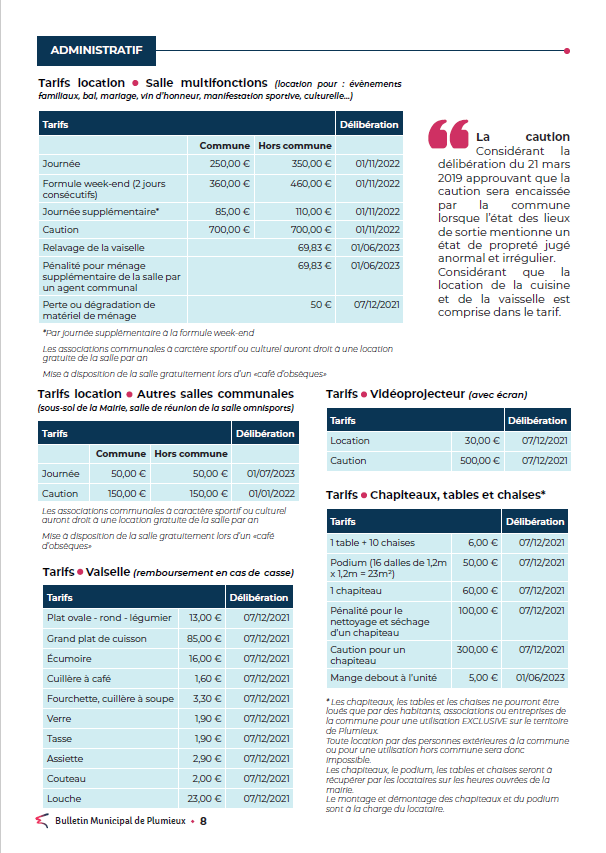 La commune propose à la location pour les habitants, associations ou entreprises Plumetaises pour une utilisation EXCLUSIVE sur le territoire de Plumieux :